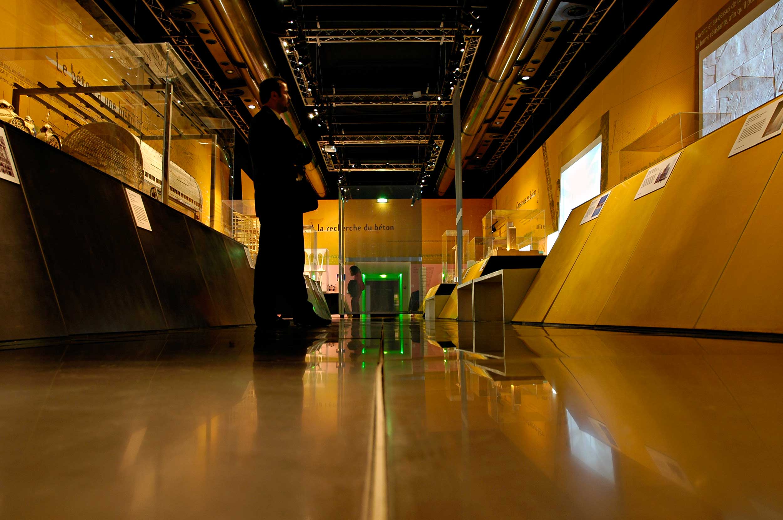 Le Musée des Arts et Métiers souhaitait que l’exposition «Bétons: étonnez-vous!» permette au visiteur de mieux connaître ce matériau à travers l’évocation de différents thèmes: le béton et son histoire, les nouveaux «matériaux Béton», la recherche scientifique et enfin les grandes réalisations architecturales contemporaines utilisant le béton.